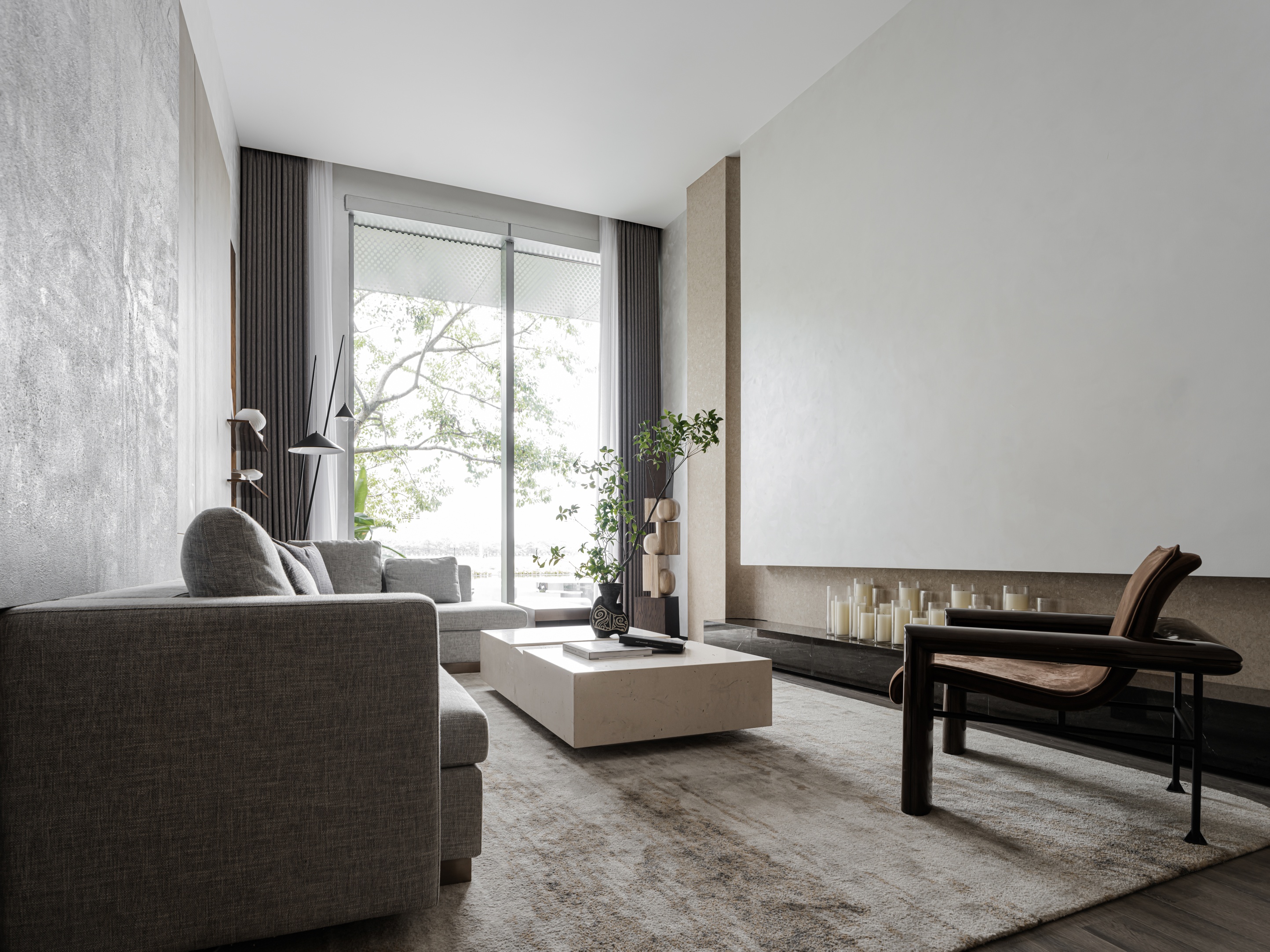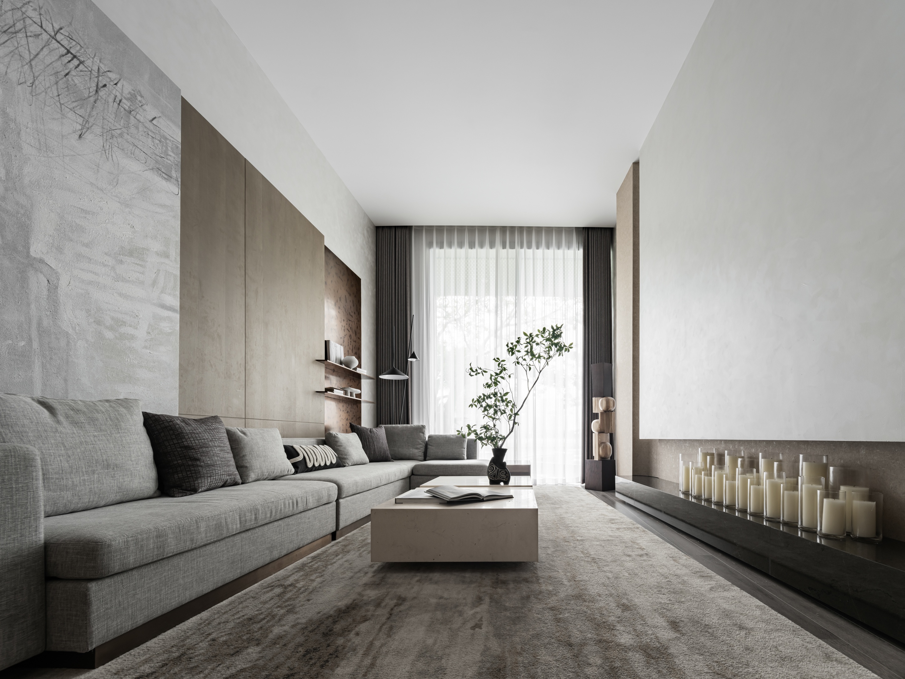 朴素、静谧、自然的质感,以及水泥灰色调塑造的空间,既舒适又能打动人心,旨在创造克制、安静的氛围。
