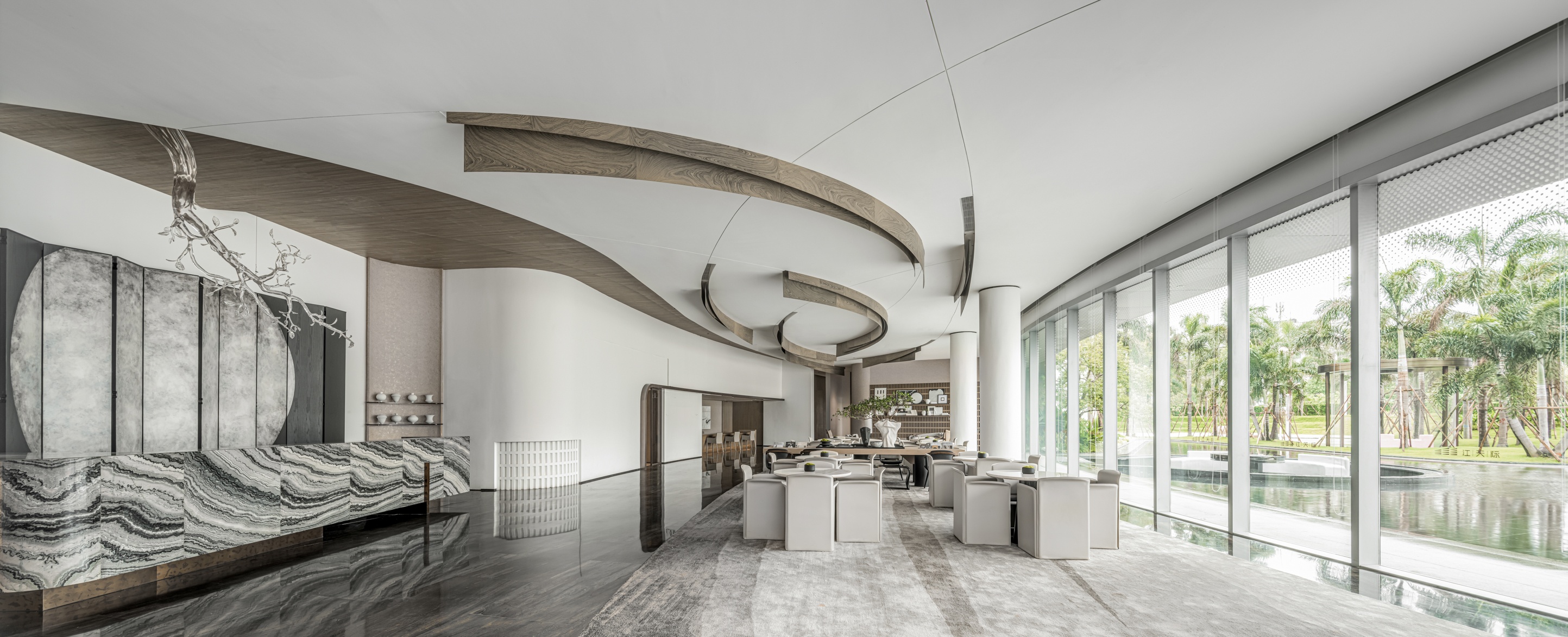 不受约束的留白,削减到本质,但不剥离它的韵,保持干净纯洁,但不剥夺生命力。“远实为用,而进审美”的意境表达,是设计师对自然深厚的敬意,在幽静中延续美学,营造“不经意间的美”。